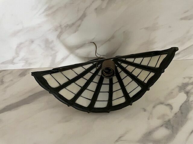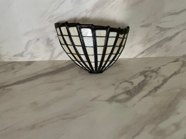Stylowy kinkiet w stylu art nouveau. Wykonany z metalu w ciemnym kolorze, z przezroczystymi szklanymi panelami w kolorach miodowo-perłowych. Nadaje się do oświetlenia wnętrz w klasycznym, eleganckim stylu. Odbiór osobisty.Sprawdź zainteresowanie tym ogłoszeniem