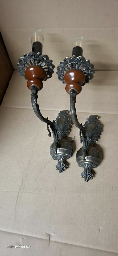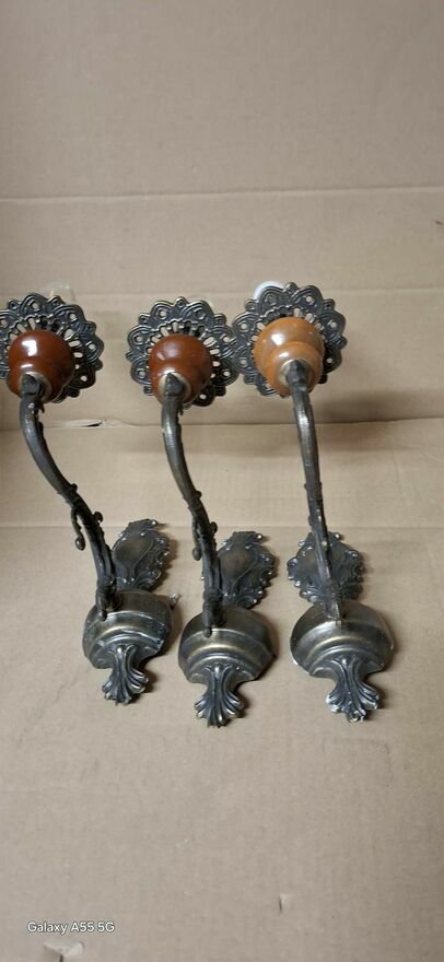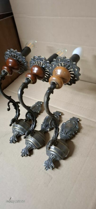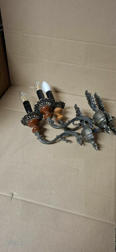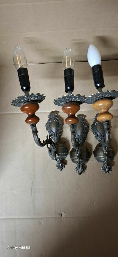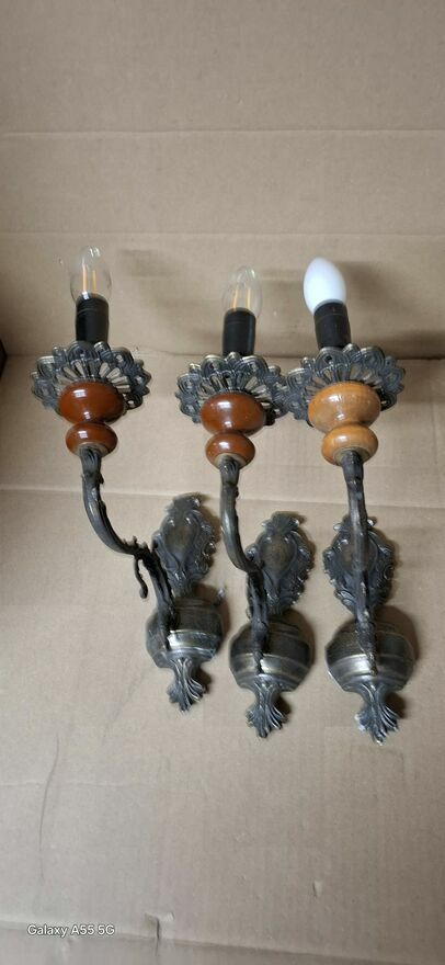 Kinkiety wykonane z masywnego mosiądzu. Pięknie się zestarzały - klimat vintage. Stan jak na zdjẹciach. Cena za 3 szt.Sprawdź zainteresowanie tym ogłoszeniem