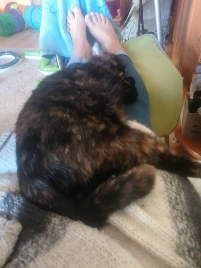 Klarcia jest wyjątkowo pięknym kotem. Zielone oczyska są ozdobą w kolorowym pysiu. Ma śliczny kolor futerka -jest wysoką, ciemną szylą z rudymi refleksami. Ma też byle jak założone rudawe skarpetki i taką końcówkę ogonka. Przystojniaczka z niej wielka! I wielbicielka wody też z niej wielka. Z uporem kocim Klarunia podejmuje próby zrobienia w domu luksusowego basenu ;) wychlapując wodę z pojemnika. Czasem jej się udaje zmontować prawie olimpijską sadzawkę ;)Jest wyjątkowo otwartym Kotem. Nie boi się obcych, jest bystra, wesoła, kontaktowa i gadatliwa. Lubi przyjść i uwalić się na ludzia i czekać na mizianki. Mruczy ślicznie ale nie nachalnie. Biega szybko, goni kulki, stroszy ogonek, buksuje na śliskiej podłodze. Lubi wtykać nosek w każdą dziurę. Wszędzie ciekawość ją popędzi. Wie, że jest Klarusią. Reaguje na imię. Gdy psoci wie, że źle robi. Jest gadułą i pyskaczem. Szczególnie jak jej się zwróci uwagę. Ma szeroki zasób kocich słów. I umie je używać :)