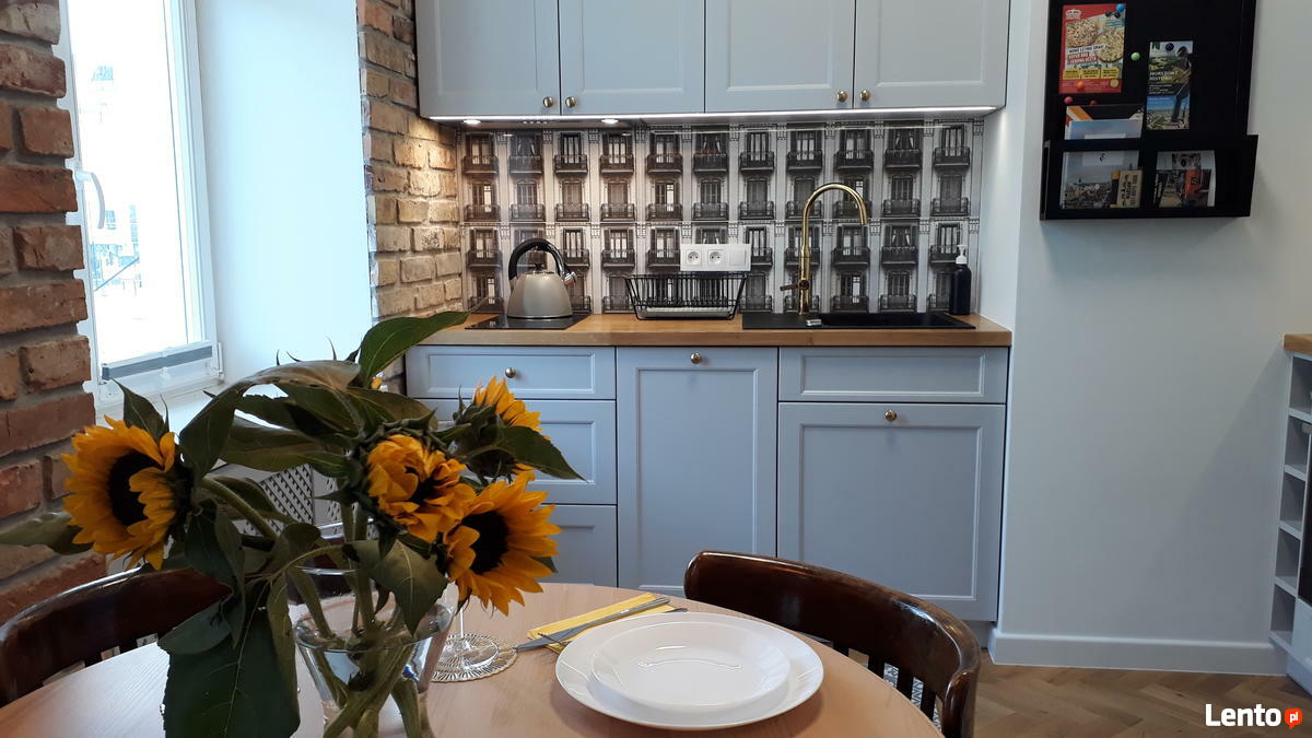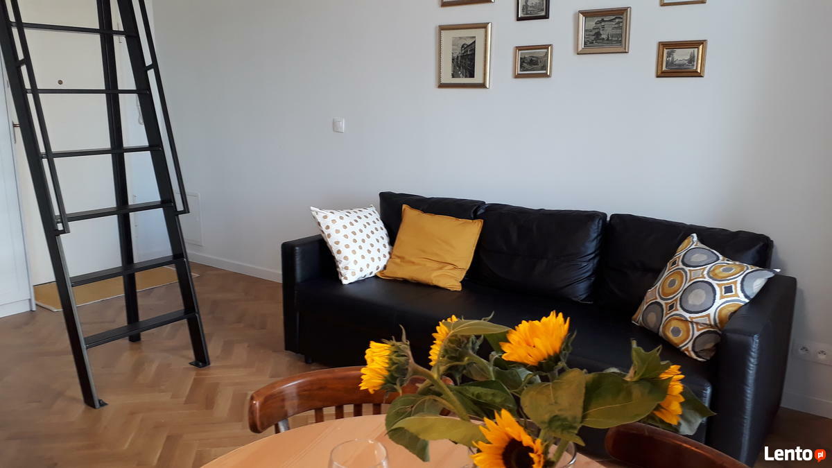 Kawalerka została zaprojektowana i urządzona w bardzo wysokim standardzie z dużą dbałością o detale i komfort. W salonie znajduje się rozkładana sofa i antresola z podwójnym łóżkiem (nowa pościel i ręczniki na wyposażeniu).