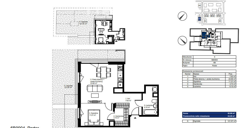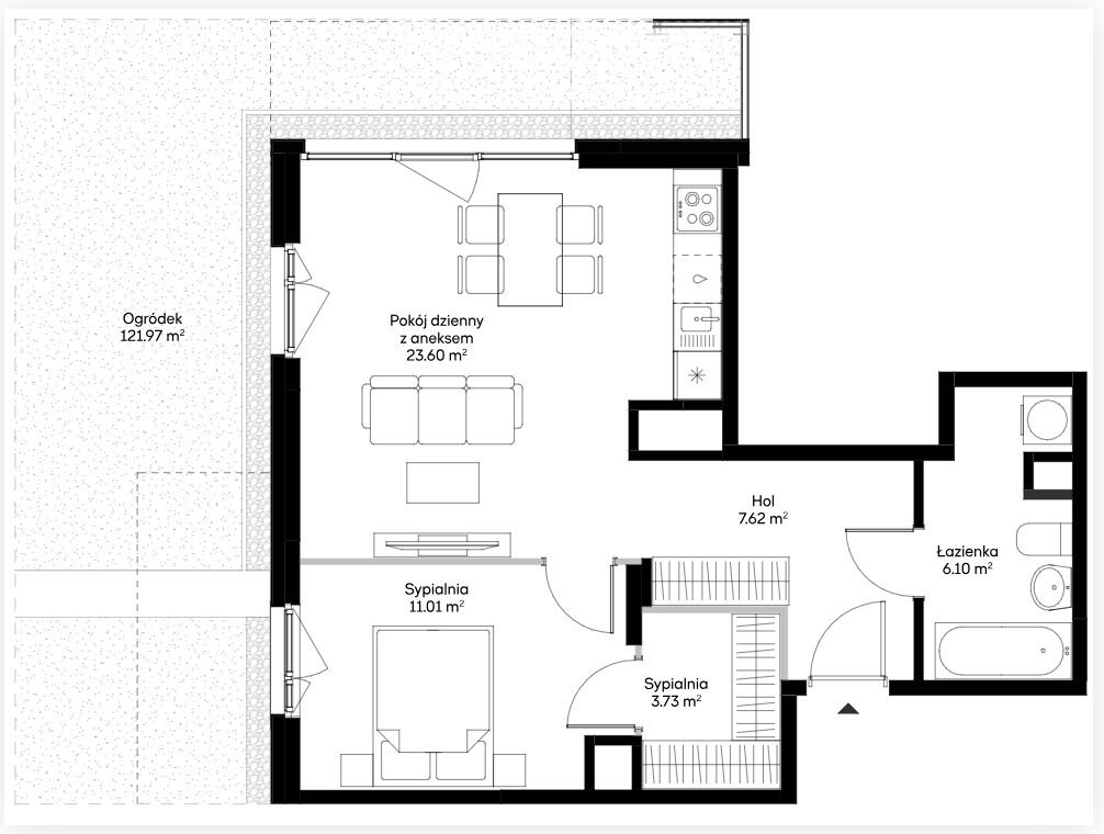 - pokoju dziennego z aneksem kuchennym - 23,60 m2