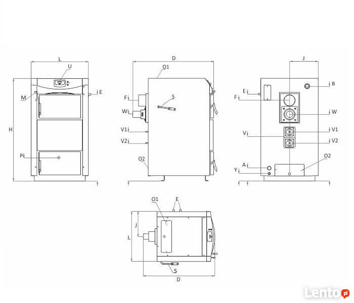 Wymiar kotła Alpha : 676x930x1255 mm