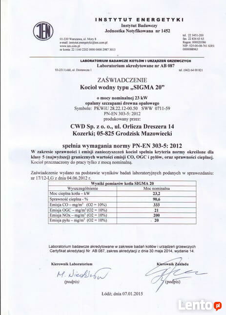 Kocioł C.O. zgazowujący drewno (holzgas) spełniający wymogi programu Czyste Powietrze - certyfikowany z 5 klasa i ecodesignModel: 20 Moc kotła to 20 kW (2,4 m2)