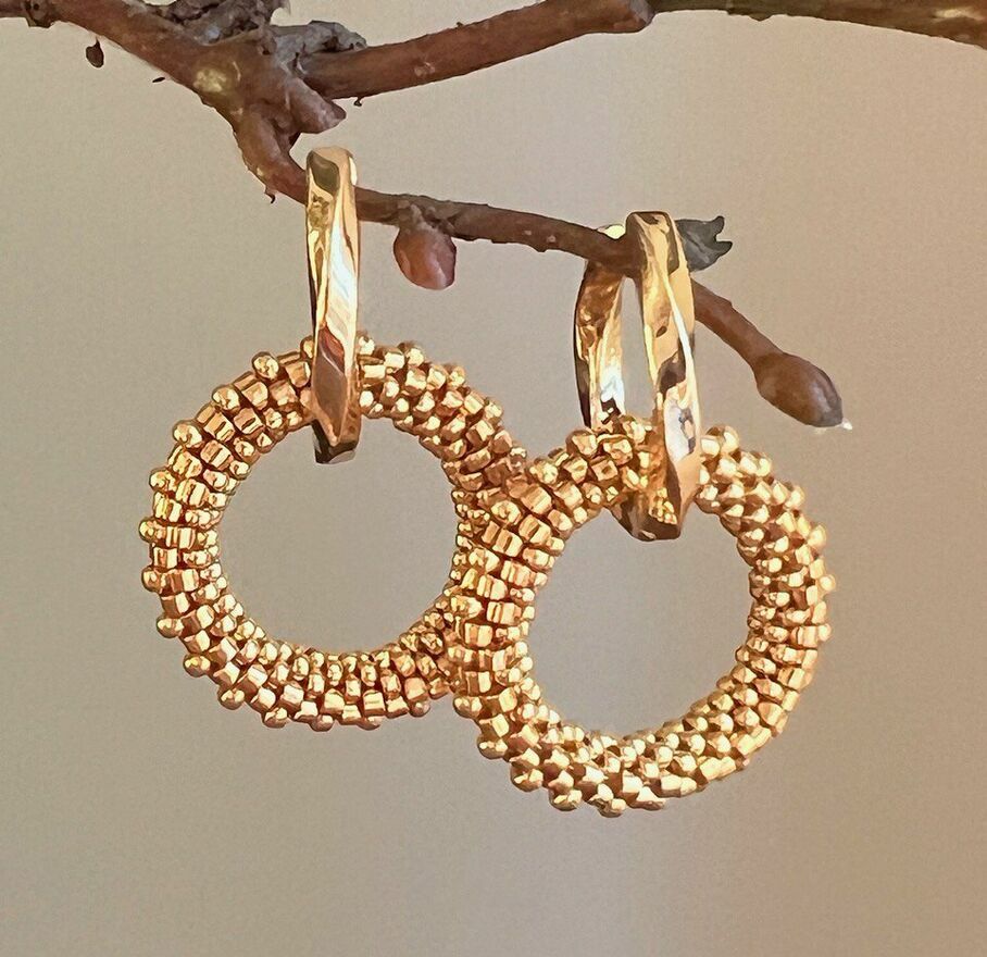 Ręcznie robione kolczyki-transformery z japońskich koralików – wygląd złota, lekkość piórka! Wyjątkowo stylowy i trendowy dodatek, który podkreśli Twój charakter. Lekkie i wygodne: wyglądają jak złoto, ale są niemal niewyczuwalne na uchu!Funkcja 2w1: możesz zdjąć pierścień z koralików i nosić jako mniejsze, eleganckie kolczyki!
