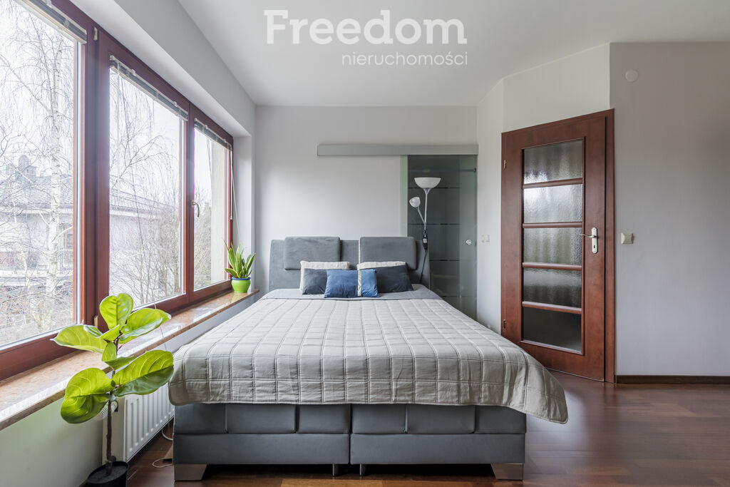 Na piętrze znajdują się 3 niezależne pokoje. W sypialni master