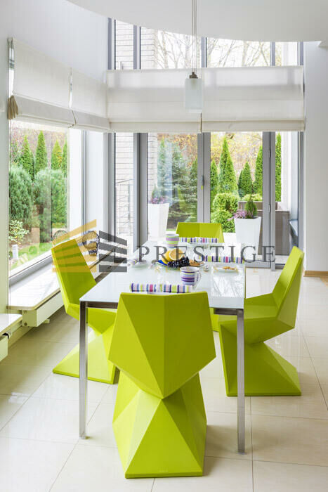 zewnętrzna, story rzymskie w jadalni i salonie, moskitiery na