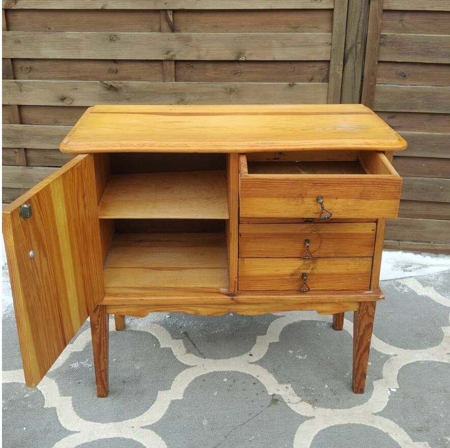 Sprzedam drewnianą, małą komodę. Doskonała do przedpokoju, sypialni czy pokoju dziewczynki.Dostępne 2 sztuki. Cena: 199 zł/szt