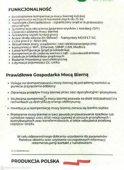 Gwarancję likwidacji opłat za energię bierną zapisaną w umowie.