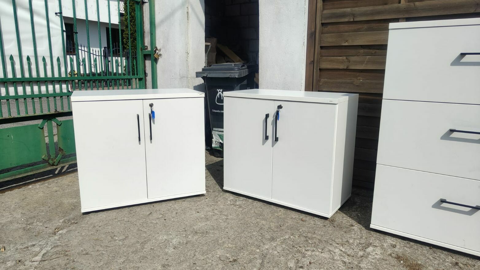 Sprzedam komplet porządnych, białych mebli do biura renomowanej marki MDD. W skład zestawu wchodzi: 2 x szafka niska 2-drzwiowa + 2 x komoda z szufladami kartotekowa.Meble sprzedaję pojedynczo lub w komplecie