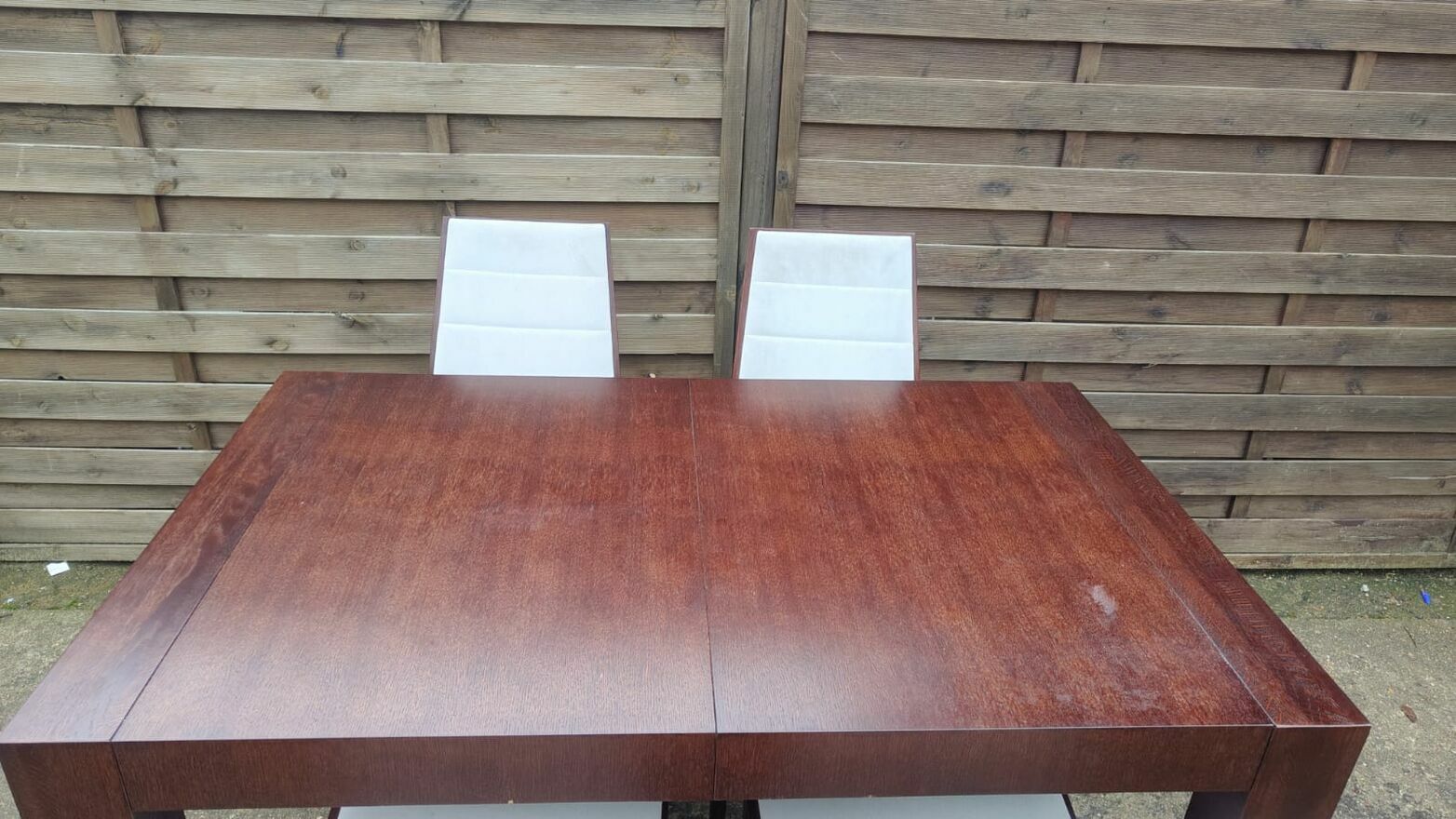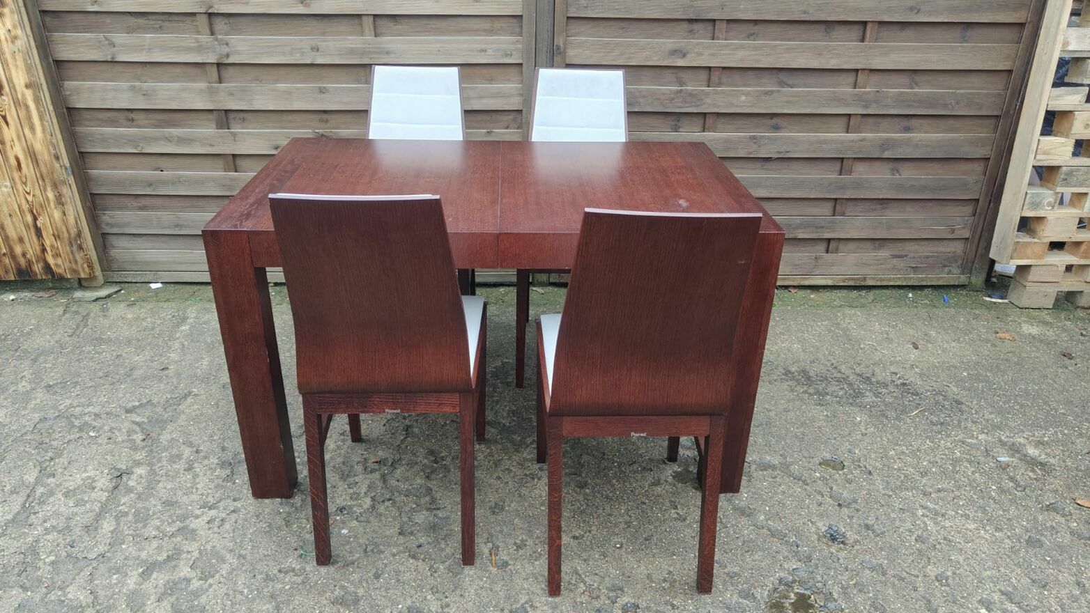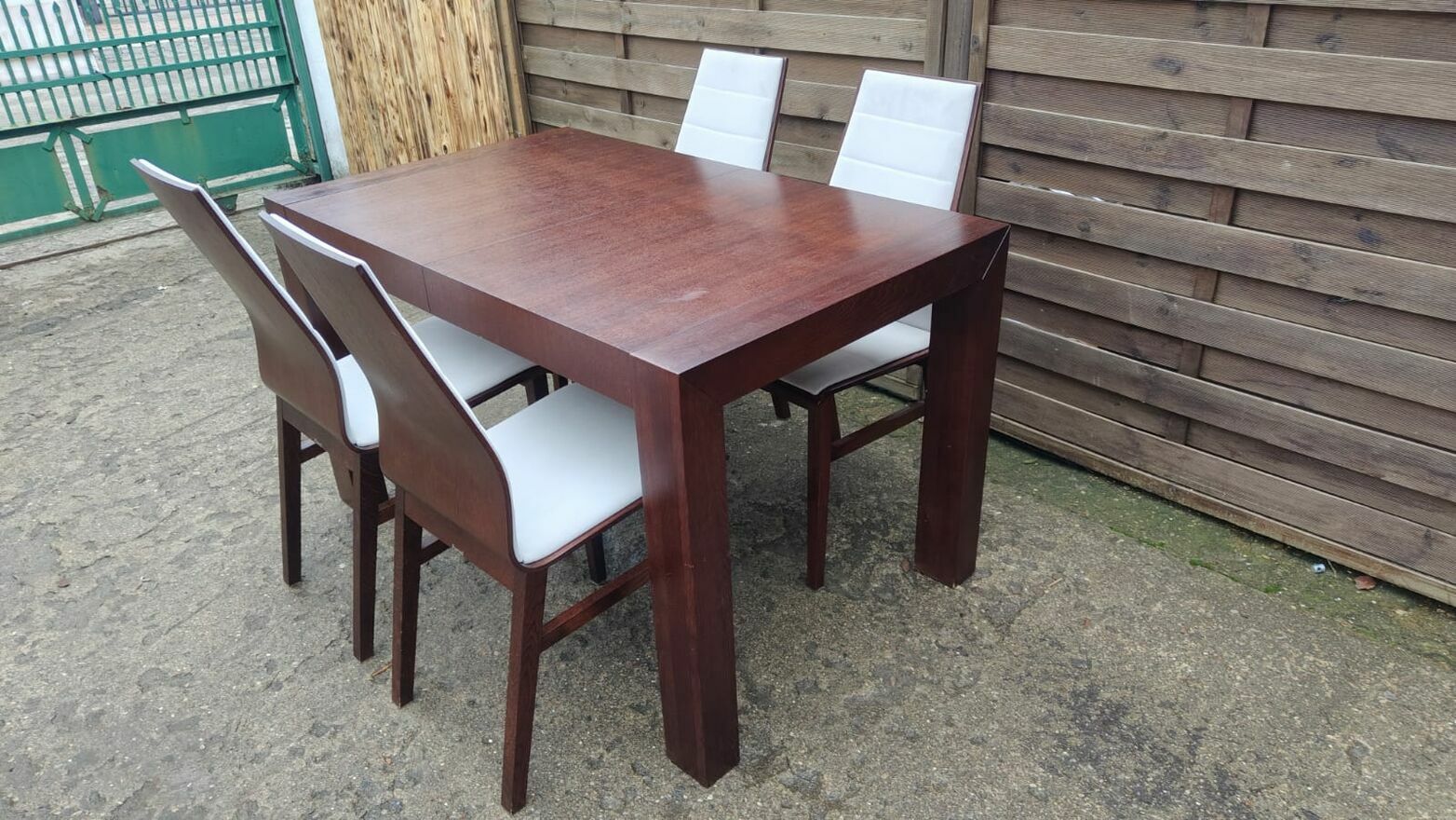 Sprzedam piękny, elegancki zestaw mebli do jadalni marki Paged Meble - stół rozkładany Cuba + 4 krzesła Linea Macao. Wykonane z drewna i forniru.Wymiary stołu: dł.130 - 185 / wys.76 / szer.80