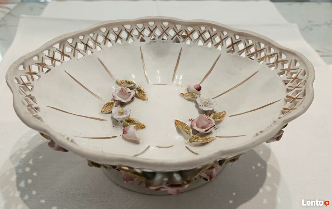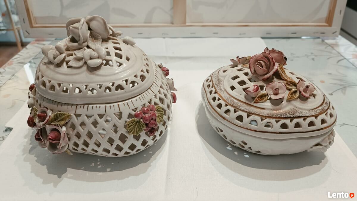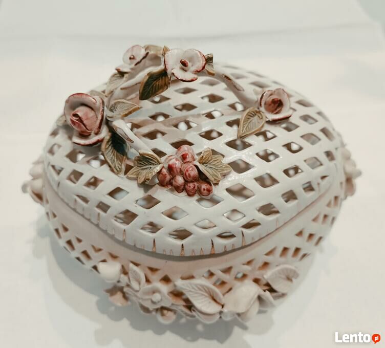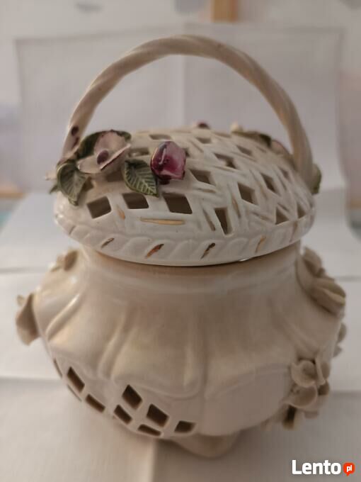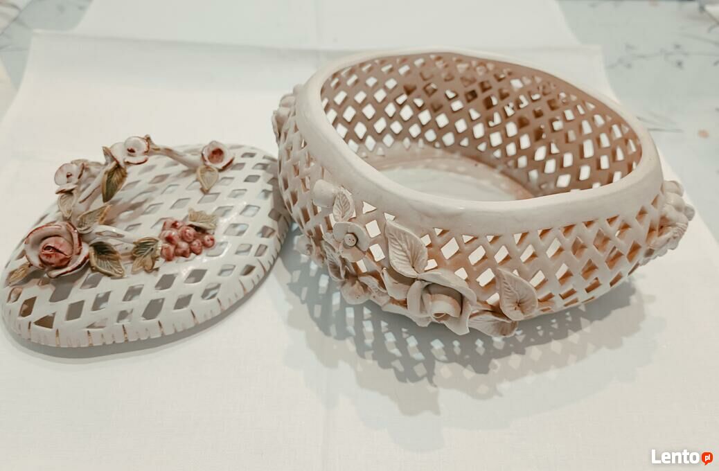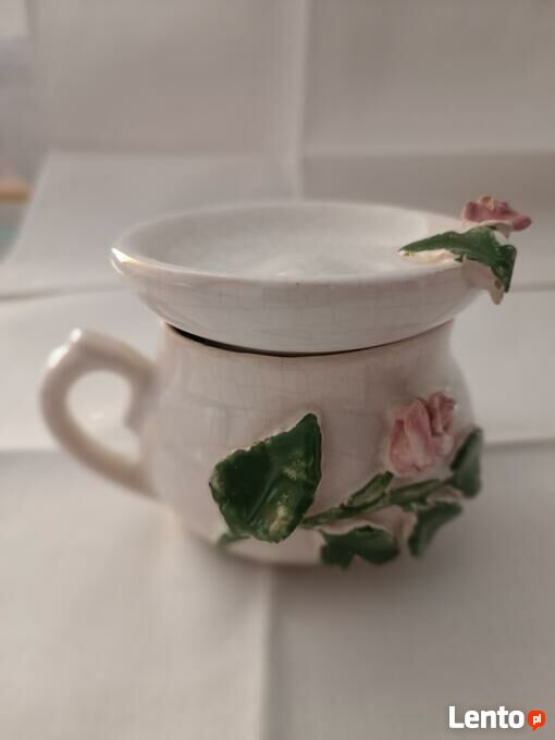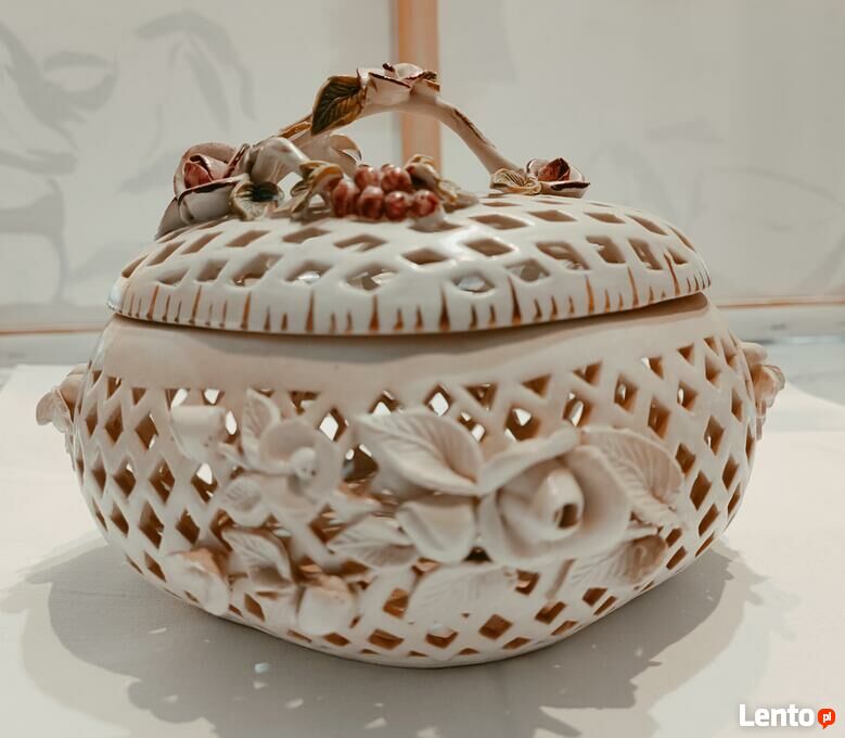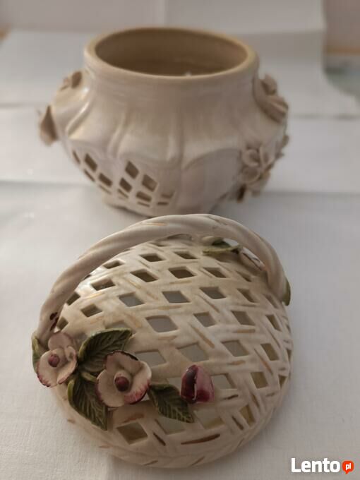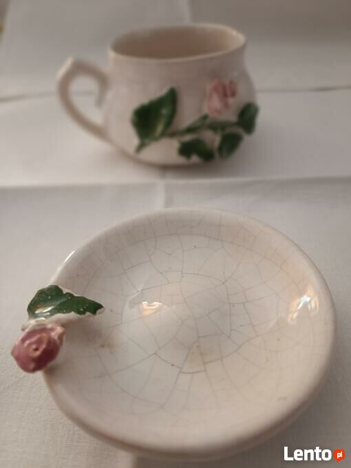 Komplet z porcelany, ręczne wykonanie ażur, róże, kolor ecri