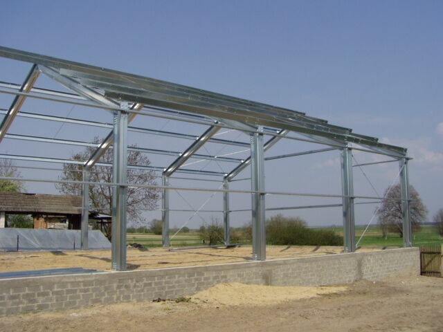 Konstrukcje nowe z projektem technicznym ,o wymiarach : szerokość 12 m x długość 20 m x wysokość w okapie 4,0 m. Oferujemy również konstrukcje o dowolnych wymiarach , o rozstawie słupów od 9 m do 40 m i o dowolnej długości . Konstrukcje jednospadowe, dwuspadowe , jedno i wielonawowe, również wg. indywidualnego projektu inwestora . Jako obiekty wolnostojące oraz obiekty z możliwością dobudowania do istniejących budynków stalowych i murowanych. Konstrukcja do samodzielnego montażu lub montaż po naszej stronie.Konstrukcje dostarczamy na terenie całej Polski. Dostawa do 30 dni. Posiadamy 20- letnie doświadczenie. Pierwszą halę wybudowaliśmy w 2005 r.w województwie podkarpackim.