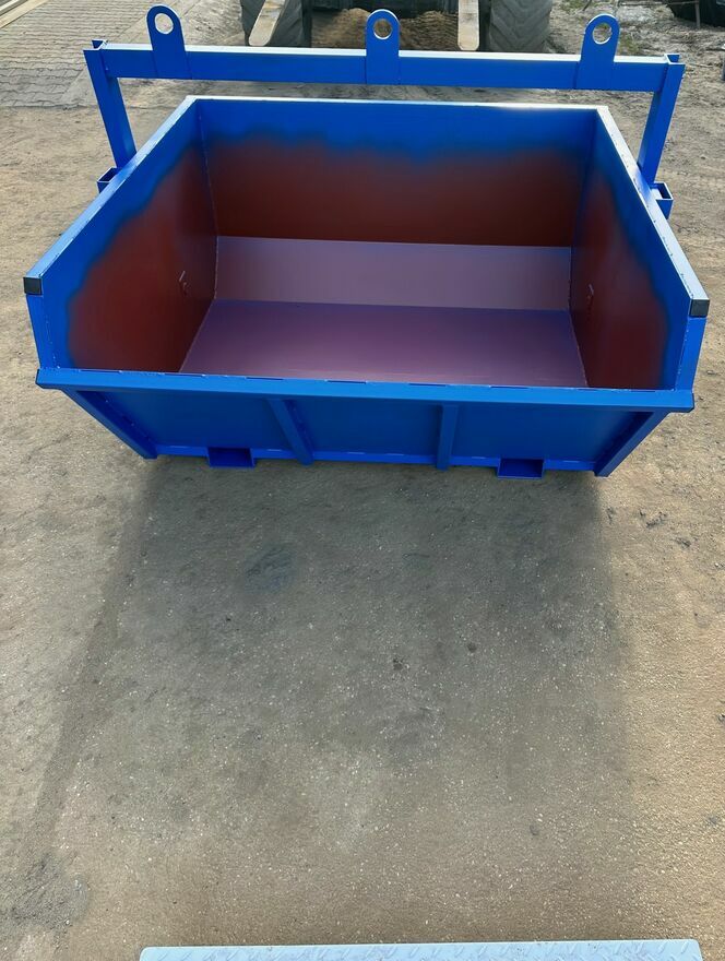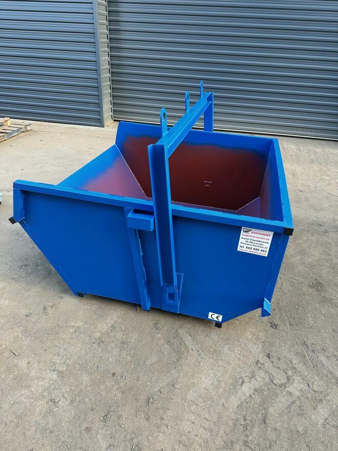 Kontener samowyładowczy typu ,,mulda". Wymiary kontenera: - szerokość 1100 mm - wysokość 740 mm - długość 1500 mm - waga ok. 150 kg - pojemność 1 m3 Pojemniki są wykonane z blachy CERTYFIKOWANEJ o grubości 3 mm, podstawa posiada liczne wzmocnienia. Oczywiście grubość materiału z jakiego ma zostać wykonany pojemnik można ustalić indywidualnie. Jak widać na powyższych zdjęciach kontenery są częściowo gięte co automatycznie przekłada się na większą wytrzymałość i dłuższą trwałość produktu. Pojemniki mogą służyć do przewozu różnych materiałów sypkich, takich jak: *żwir *piasek *cement *gruz *złom *węgiel *wióry *i wiele innych Z racji szczelności produktu może służyć także do przewozu substancji płynnych. Produkt jest malowany dwukrotnie, farbą podkładową i farbą z kolorem na gotowo - kolor może ulec zmianie według życzenia. Kontener przystosowany do transportu pionowego, można także przewozić go wózkiem widłowym/ ładowarką teleskopową. Do każdego pojemnika dołączamy: - Deklarację Zgodności CE - 12 miesięczną gwarancję oraz - instrukcję obsługi. Podana cena jest ceną netto. Transport uzgadniany indywidualnie. Zapraszam do kupna.Sprawdź zainteresowanie tym ogłoszeniem