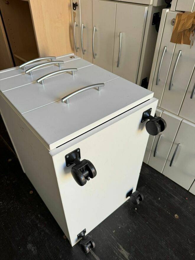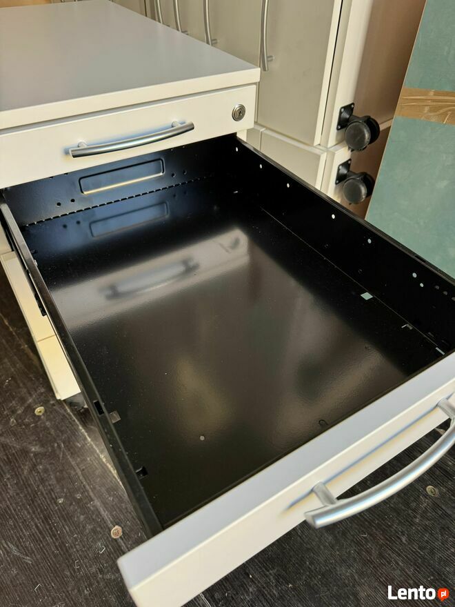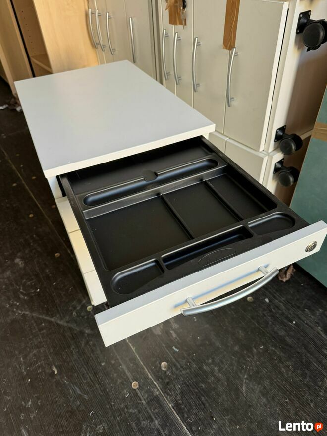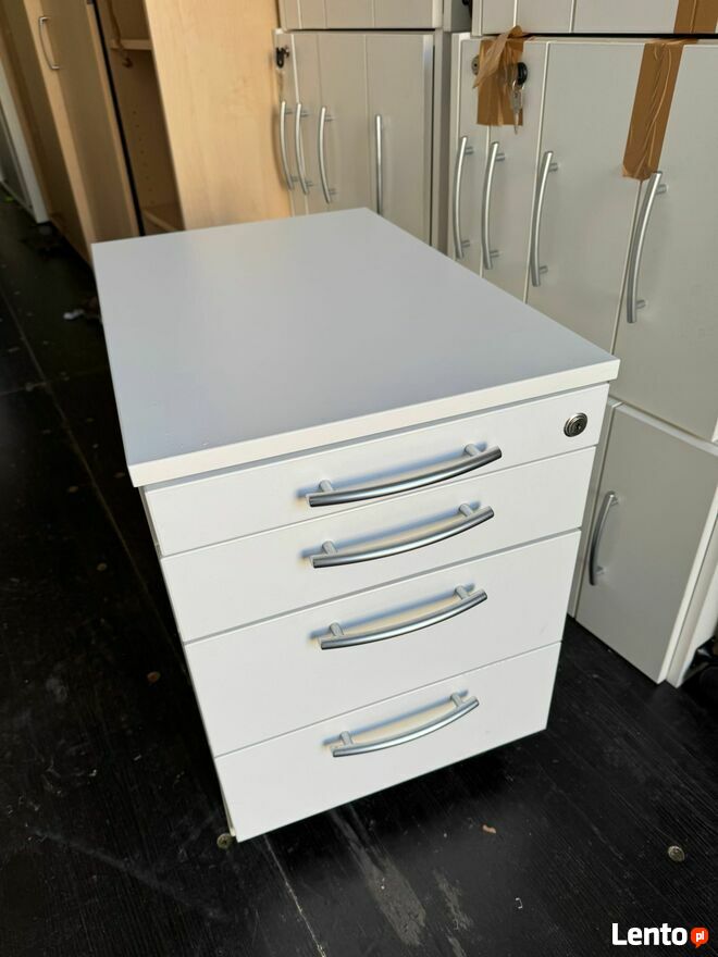 W ofercie kontenerek w kolorze białym na kółkach :Mobilne kontenery biurowe są w pełni mobilne, wyposażone w kółka. Można je swobodnie przenosić tam, gdzie są potrzebne. Idealnie mieszczą się pod biurkiem i zapewniają wystarczająco dużo miejsca do przechowywania wszystkich plików i dokumentów, które chcesz trzymać z dala od biurka, a jednocześnie mieć je pod ręką. Mobilna komoda stanie się nie tylko Twoim asystentem w pracy, ale także nowoczesnym dodatkiem do Twojego biura lub domowego gabinetu.