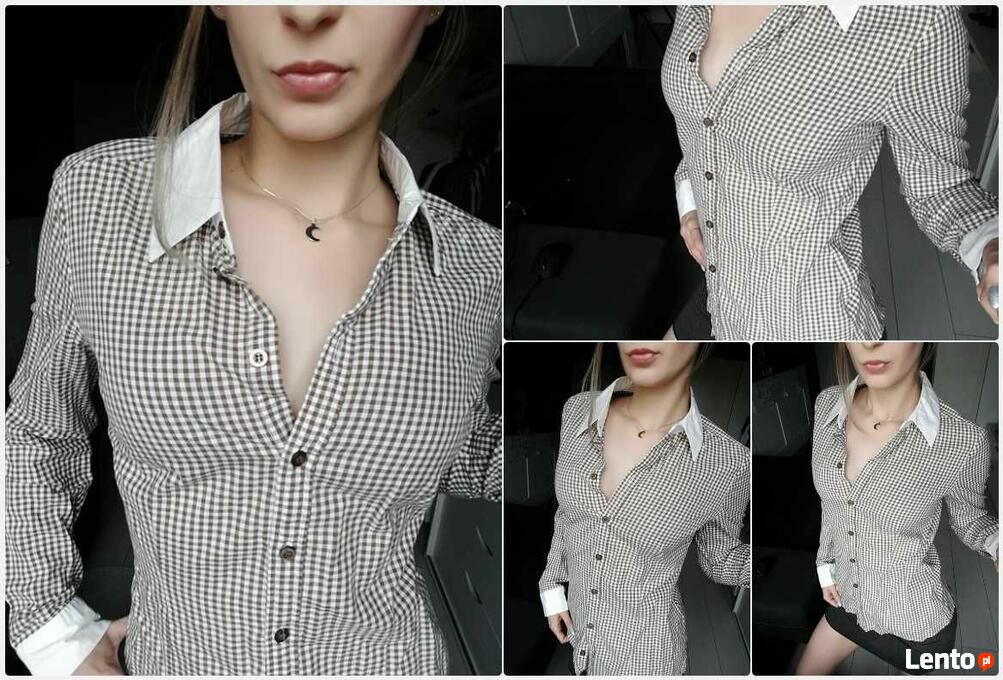 Koszula w kratkę oliwkowy khaki zielona biały kołnierzyk Top Secret S 36Koszula jak nowa.