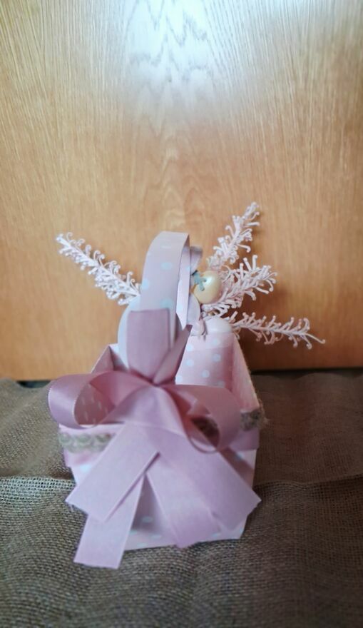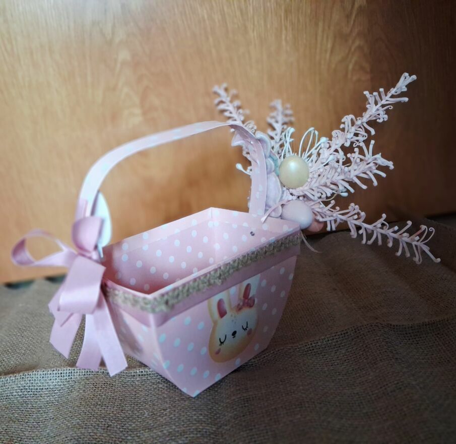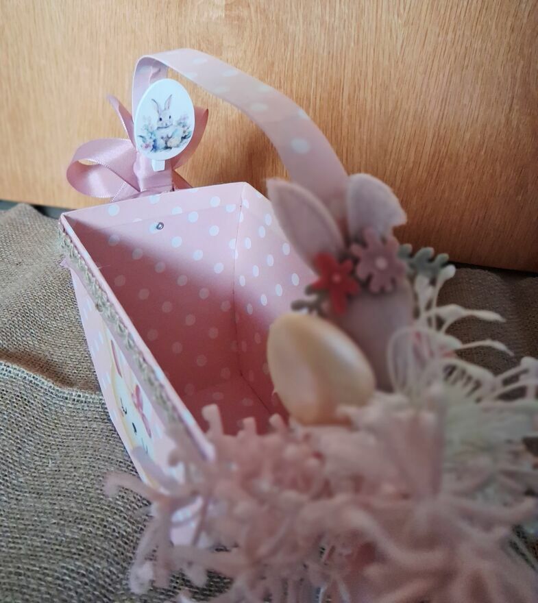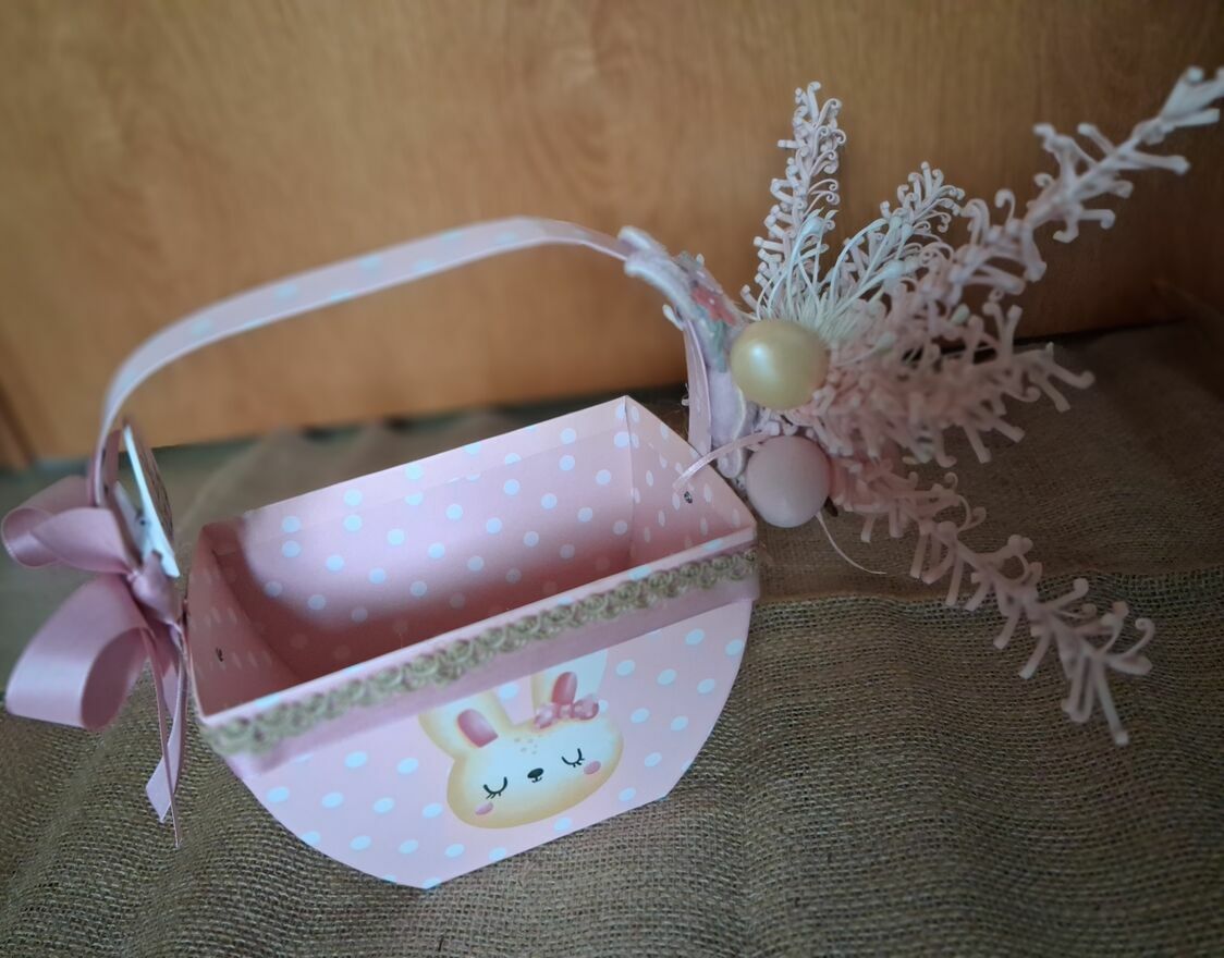 Koszyczek wielkanocny wykonany z tektury, ozdobiony uroczymi motywami. Świetnie sprawdzi się jako dekoracja lub praktyczny dodatek na Wielkanoc.Sprawdź zainteresowanie tym ogłoszeniem
