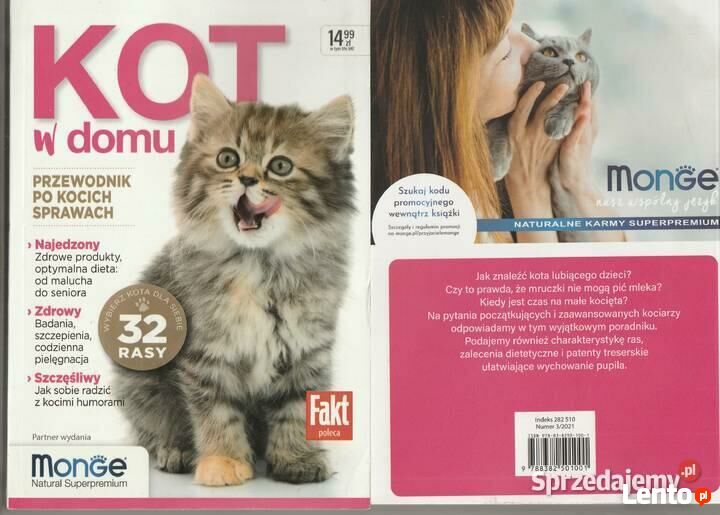 Podtytuł: Kot w domu Numer wydania: 3/2021 Data wydania: 2022-04-13 Częstotliwość: nieperiodyk Język wydania: polski Kraj wydania: Polska Grupa produktowa: Czasopisma krajowe Seria: Fakt Poleca Wymiary: 209 x 148 KOT W domu PRZEWODNIK PO KOCICH SPRAWACH > Najedzony Zdrowe produkty, optymalna dieta: od malucha do seniora › Zdrowy Badania, szczepienia, codzienna pielęgnacja › Szczęśliwy WYBIERZ Jak sobie radzić KOTA DLA 32 z kocimi humorami RASY Jak znaleźć kota lubiącego dzieci? Czy to prawda, że mruczki nie mogą pić mleka? Kiedy jest czas na małe kocięta? Na pytania początkujących i zaawansowanych kociarzy odpowiadamy w tym wyjątkowym poradniku. Podajemy również charakterystykę ras, zalecenia dietetyczne i patenty treserskie ułatwiające wychowanie pupila. Lekkie zabrudzenia na brzegach. Karton 79 Ogłoszenie jest aktualne dopóki znajduje się na stronie . Odbiór osobisty lub wysyłkaSprawdź zainteresowanie tym ogłoszeniem
