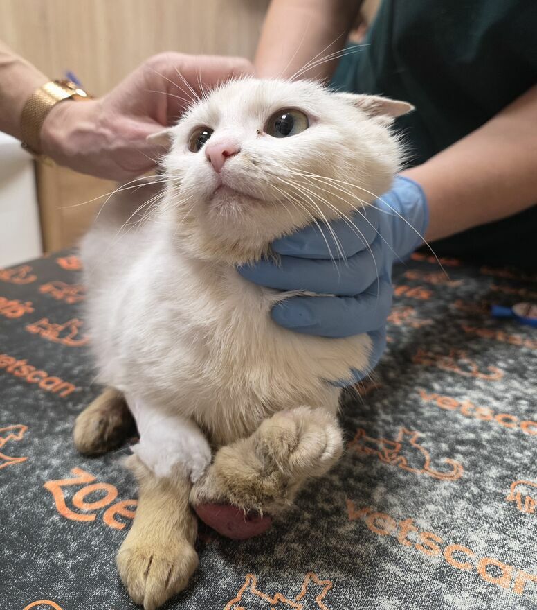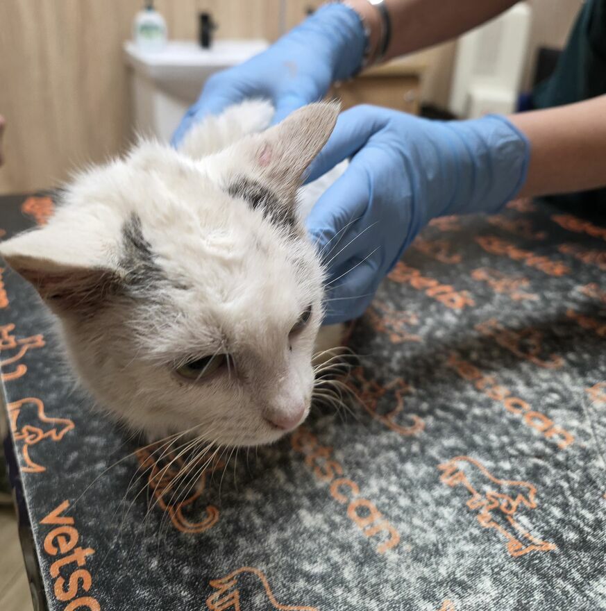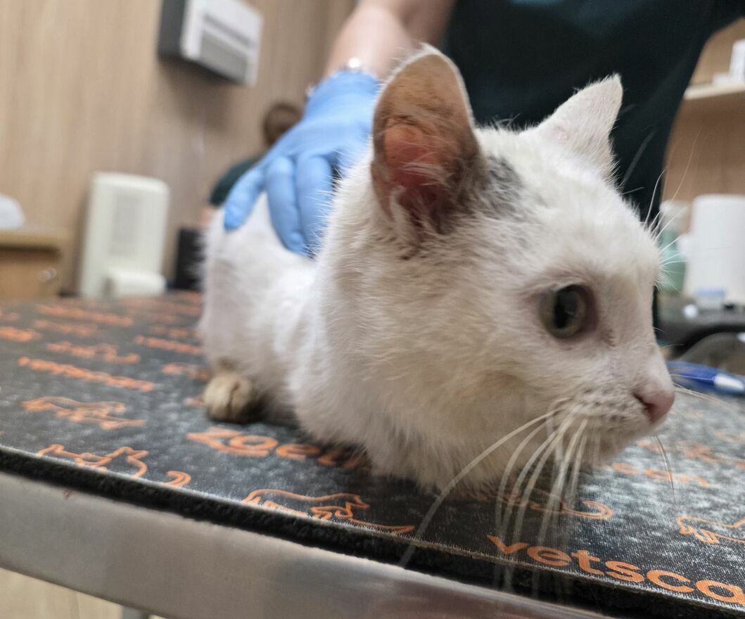 Aktualnie w lecznicy w Ostrowcu Świętokrzyskim gdzie przejdzie niestety operację amputacji przedniej łapki i felv+.