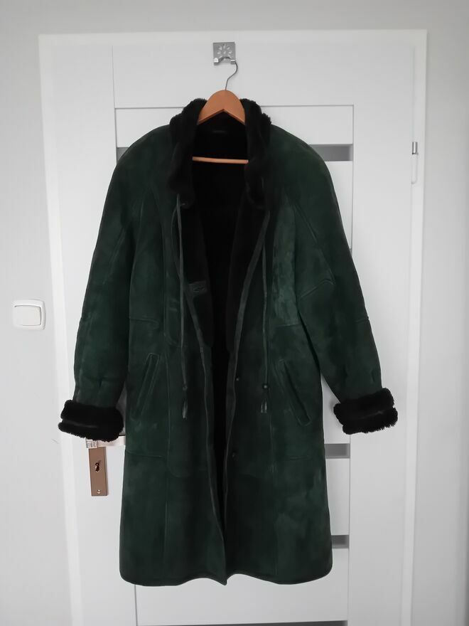 Kozuszek w kolorze butelkowej zieleni. Używany, w bardzo dobrym stanie.