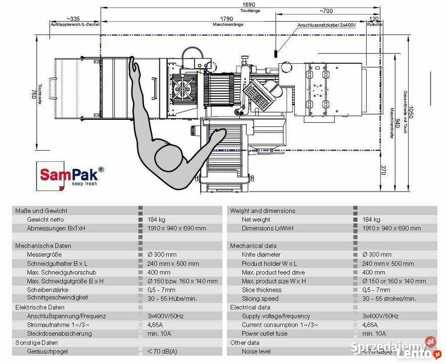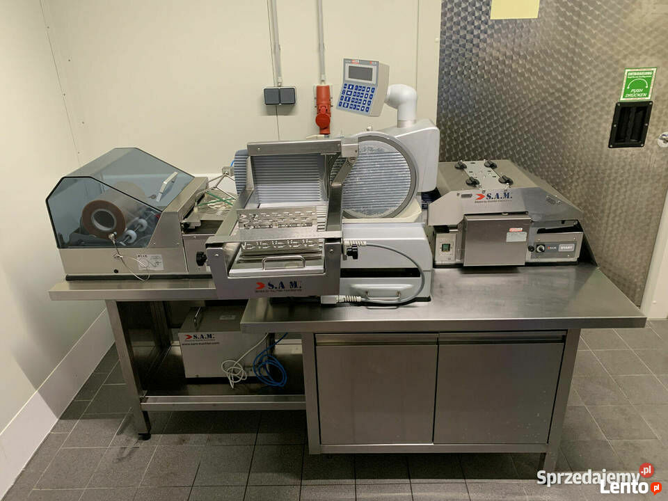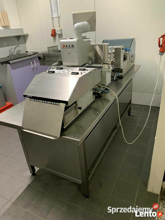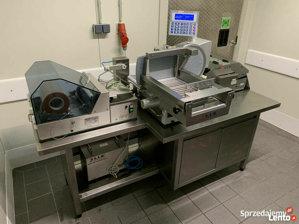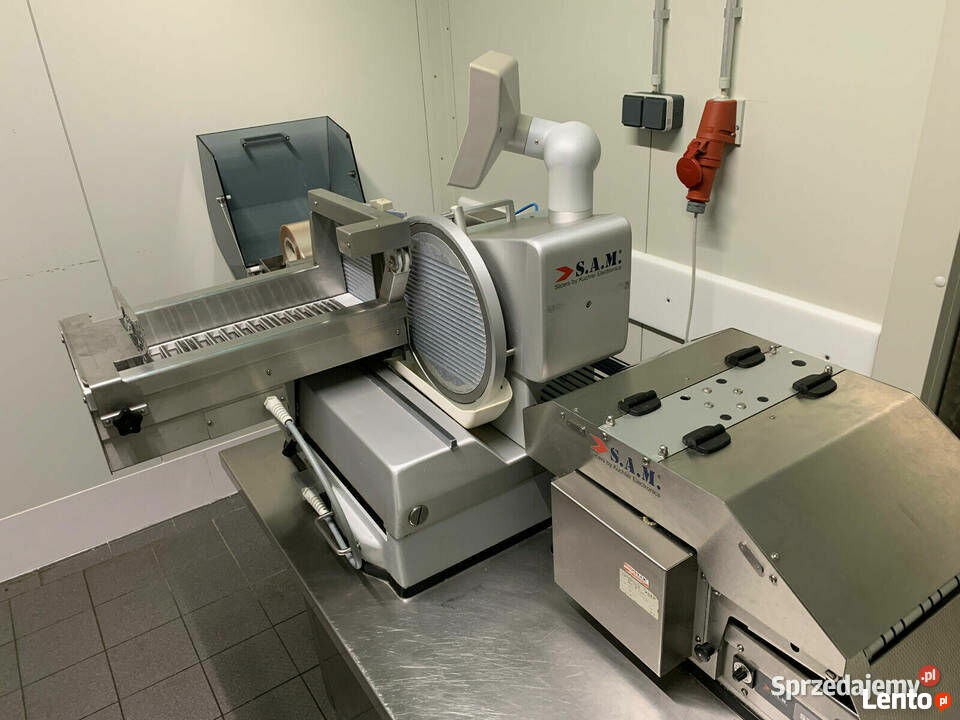 Krajalnica z pakowarka automatyczną s.a.m. Austriacki automat, nie mamy możliwości uruchomienia została zdemontowana z marketu sprawna działająca, wizualnie jak bardzo dobry stan, sprzedaje na części. W cenie jest folia do pakowania i dużo dodatkowego wyposażenia, ostrzałka i tarcze do krojenia. Cena nowej linii 25 tys euro.Cena brutto
