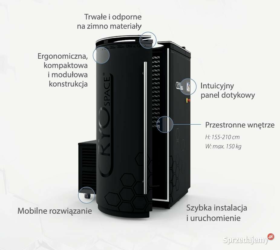 Sprzedam kriokomorę firmy CryoSpace do krioterapii ogólnoustrojowej.Hybrid - system hybrydowy - połączenie ciekłego azotu (dla optymalnych temperatur zabiegu do -194˚