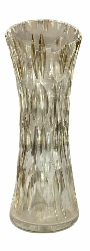 Kryształowy wazon klepsydrowy z wklęsłym szlifem oliwkowymw bardzo dobrym stanie