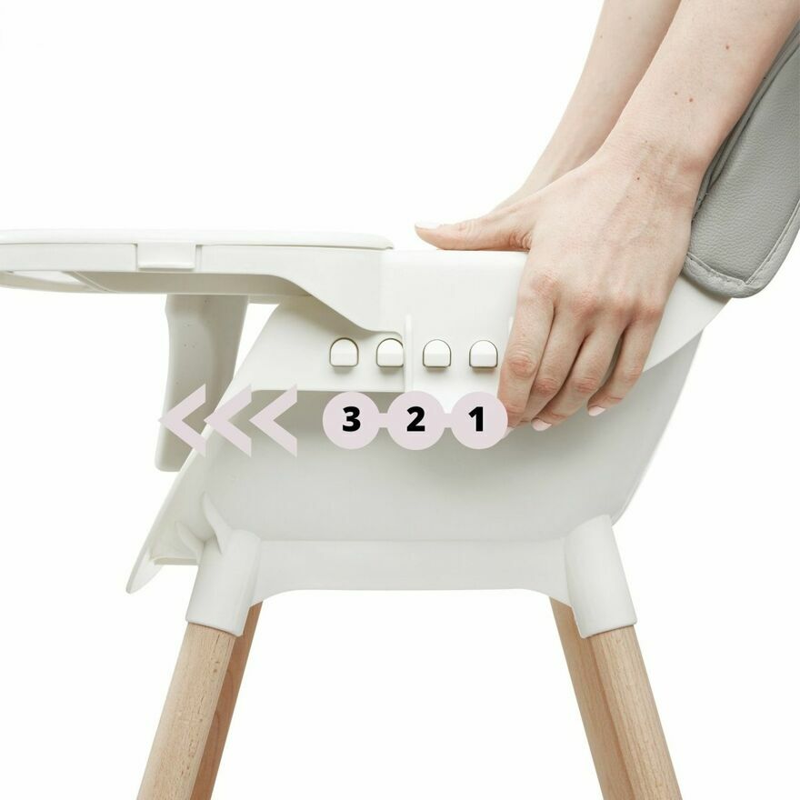Aż 3 pozycje regulacji wysunięcia tacki pozwalają stworzyć niezwykle wygodne miejsce, idealnie dopasowane do wieku i wagi dziecka. Szeroki zakres regulacji umożliwia łatwe wkładanie i wyjmowanie dziecka.