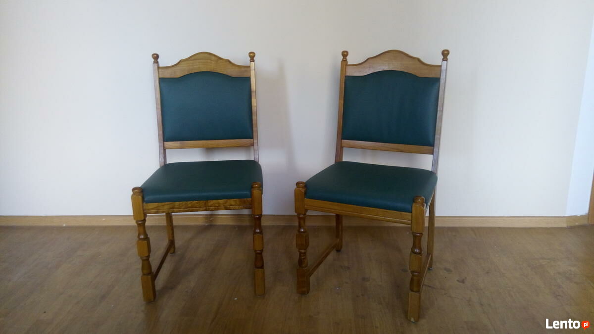Sprzedam bardzo wygodne krzesła. Konstrukcja stan b.dobry. wykonana jest z drewna, oryginalny stan i wygląd.Wymiary 47*43*46 (szer. głeb. wys.) oparcie wysokość 91 cm