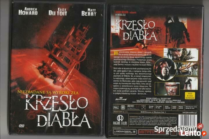 Krzesło diabła. Niezbadane są wyroki zła. W poszukiwaniu dreszczu emocji i przygody, Nick ze swoją dziewczyną Sammy jadą do cieszącego się okrutną sławą, opuszczonego szpitala psychiatrycznego Blackwater. Przeszukując ponury budynek natrafiają na starożytne krzesło, które... więzi Sammy i wysysa z niej krew na oczach Nicka. Nick trafia na leczenie do kliniki psychiatrycznej Hildon, gdzie spędza 4 lata, a następnie zostaje oddany pod opiekę wybitnego, lecz ekscentrycznego psychiatry dr Willarda. Ten, w ramach eksperymentu medycznego, zabiera pacjenta i trójkę swoich asystentów do Blackwater, gdzie mają sprawdzić skąd wzięła się traumatyczna wizja Nicka, który jest posądzony o zamordowanie swojej dziewczyny. Na miejscu przekonują się, że nie była ona tylko wytworem chorej wyobraźni pacjenta. Wszyscy wpadają w pułapkę diabelskiego krzesła - demona zła... Reżyseria: Adam Mason. Scenariusz: Adam Mason, Simon Boyes. Dodatki: interaktywne menu, dostęp do scen. Język: angielski DD 5.1, polski lektor DD 5.1. Napisy: polskie. Czas trwania: 91 min. Obraz: kolor, PAL. Rok produkcji: 2006 (Wielka Brytania). Karton 84 Ogłoszenie jest aktualne dopóki znajduje się na stronie . Odbiór osobisty lub wysyłkaSprawdź zainteresowanie tym ogłoszeniem