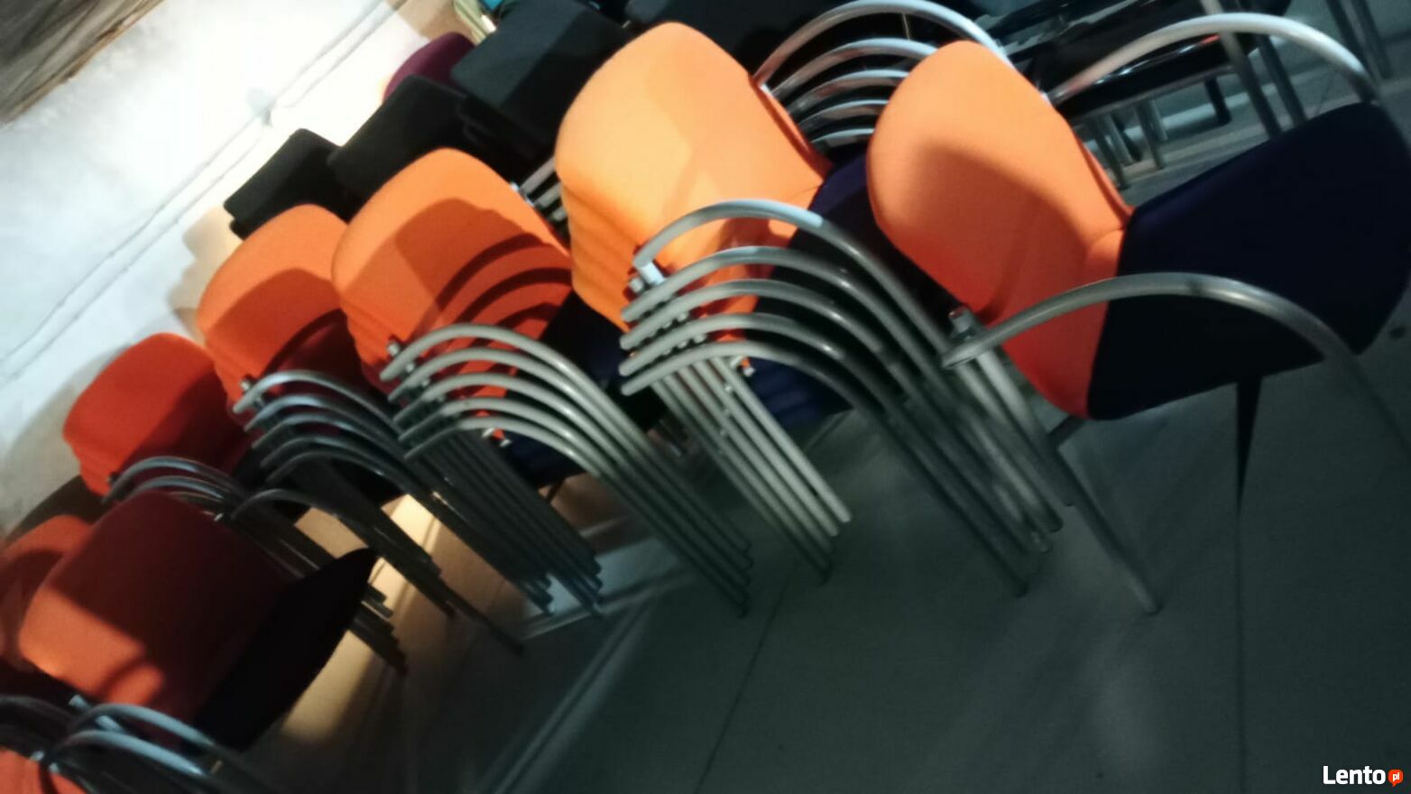 W ofercie krzesła konferencyjne producent Bejot kolor ponaranczowo granatowy metalowy solidny stelaż, możliwość sztaplowania.Cena za 1 szt