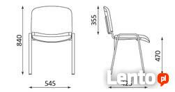 Krzesło ISO jest klasycznie wyglądającym krzesłem konferencyjnym lub recepcyjnym, opcjonalnie z podłokietnikami i opuszczanym blatem.Krzesło posiada miękkie tapicerowane oparcie i siedzisko. Stabilna rama metalowa precyzyjnie spawana przez roboty jest malowana proszkowo w kolorze czarnym.