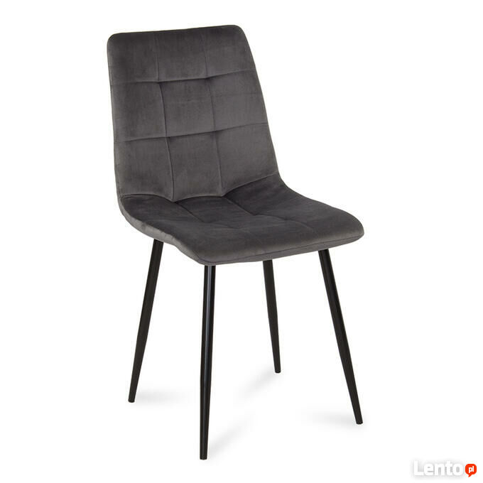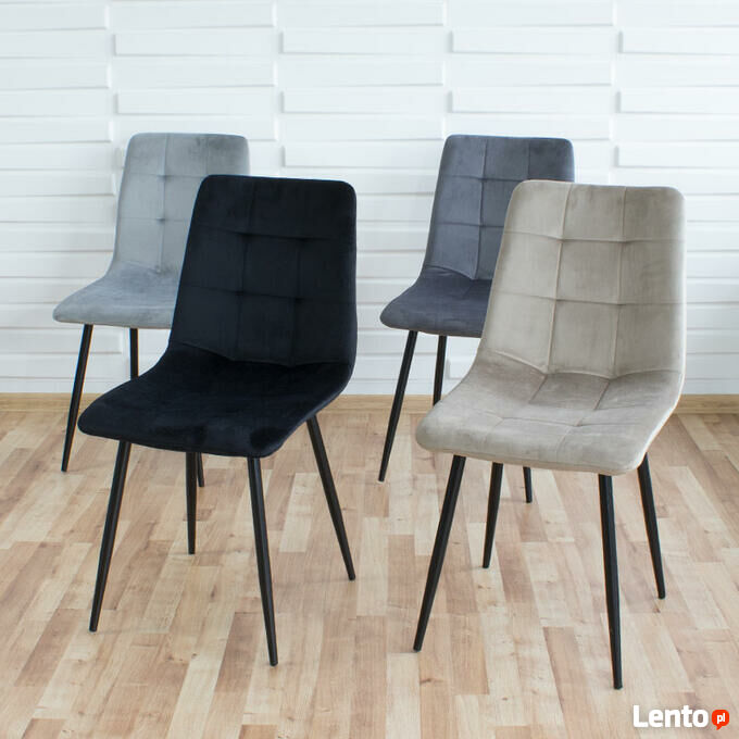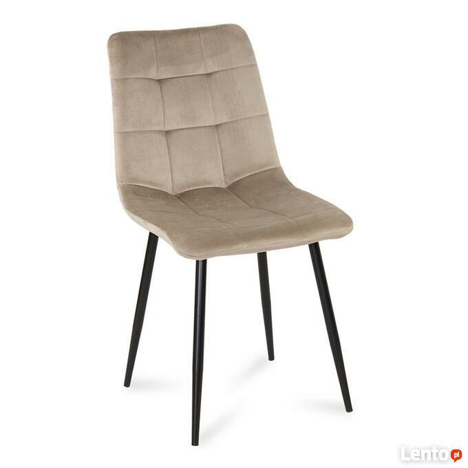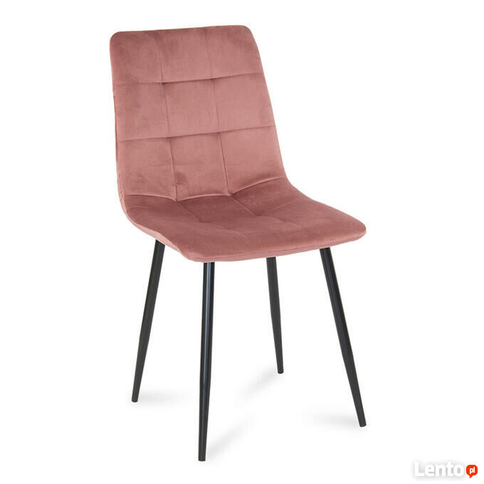 Eleganckie, tapicerowane krzesło do salonu, jadalni lub sypialni. Prosty kształt siedziska i nóg sprawia, że krzesło sprawdzi się w każdej stylistyce. Błyszczący, ciekawie pikowany welur jest miękki i przyjemny w dotyku.Krzesło jest solidnie wykonane, posiada stabilne nogi, bardzo łatwo montowane. Należy wkręcić tylko 4 śruby. Krzesło posiada praktyczną formę, można wsunąć je pod stół, dzięki czemu zajmuje mniej miejsca, gdy nie jest używane.