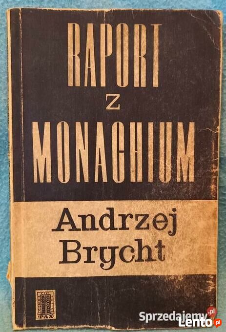 Do sprzedania posiadam książkę "Raport z Monachium" autorstwa Andrzeja Brychta.Książka jest w stanie noszącym ślady użytkowania (ma 54 lata), zniszczony kawałek grzbietu (widoczna skaza na zdjęciu), posiada miękką okładkę ze skrzydełkami.