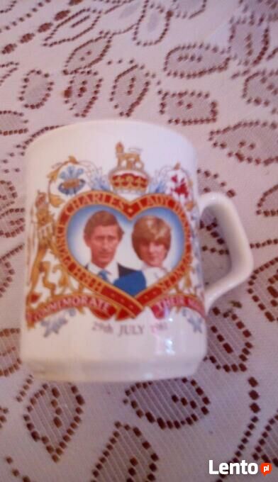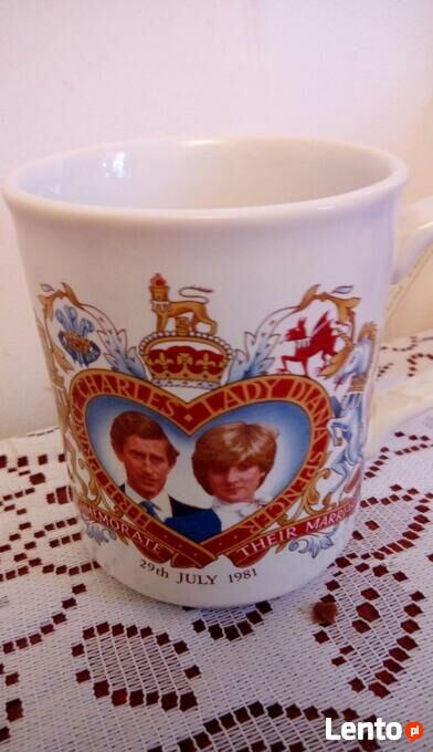 ceramiczny kolekcjonerski kubek wydany w lipcu 1981 z okazji ślubu Księcia KAROLA z Księżną DIANĄ.Wymiary: Średnica 8cm, wysokość 9cm.