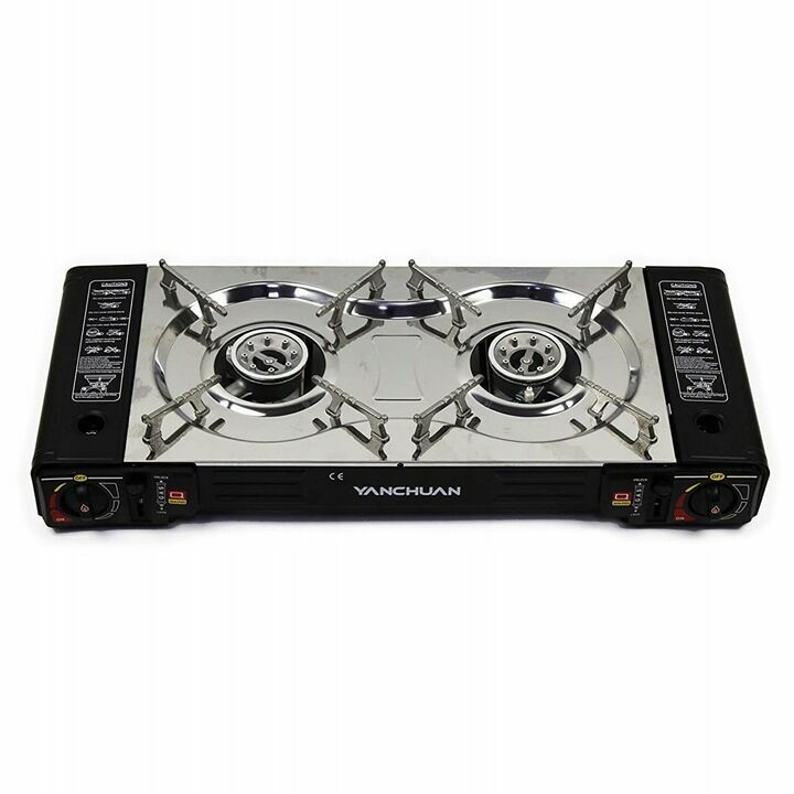 W ofercie fabrycznie nowy produkt, Kuchenka Turystyczna Gazowa Dwupalnikowa na kartusz i butle.Turystyczna kuchenka gazowa przeznaczona do gotowania w plenerze na kempingu, w ogrodzie, na budowie, na rybach itp. Znajduje zastosowanie z kartuszami gazowymi 400 ml (227 g). Jedna butla wystarcza na około 90 minut gotowania. Dwa palniki umożliwiają nam przyrządzenie dwóch potraw jednocześnie.