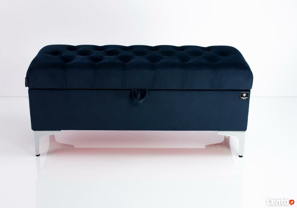 KUFER Tapicerowany CHESTERFIELD w kolorze Granatowym PIANO 12 model Q-1 produkowany jest rozmiarach od 50 cm do 120 cm