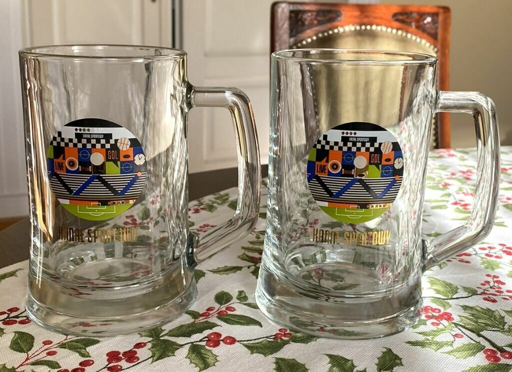 Para dwóch szklanych masywnych kufli zdobionych logiem Kanału Sportowego,stan znakomity,