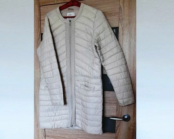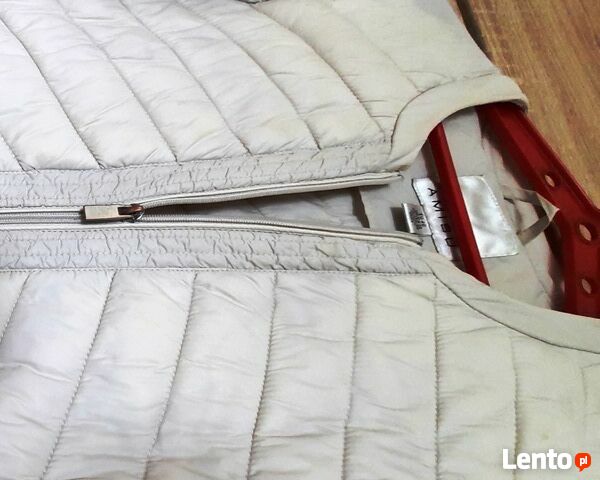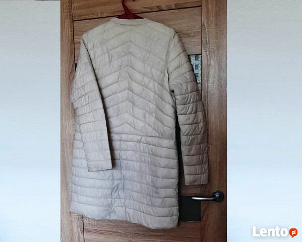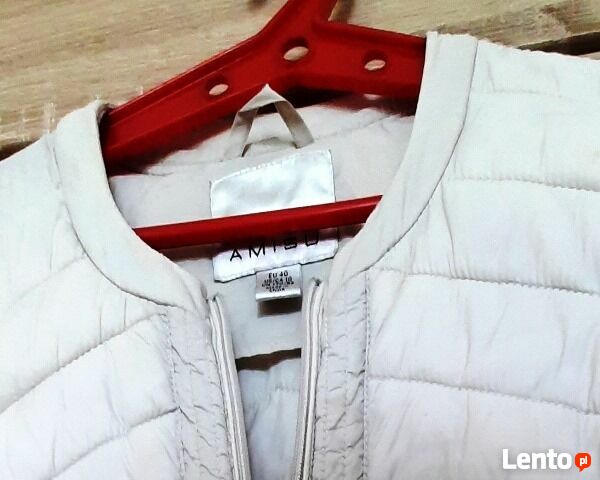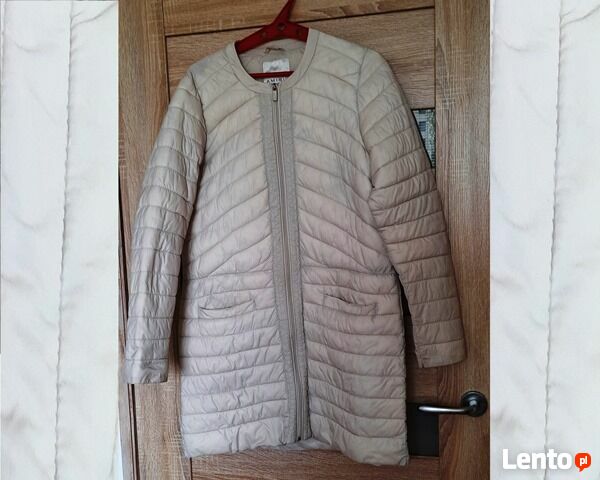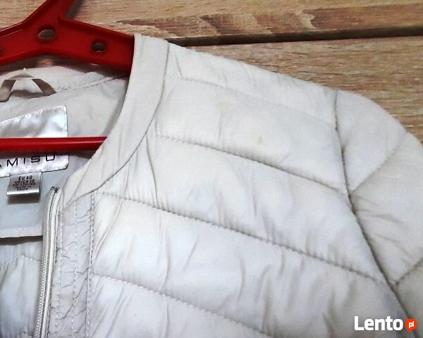 Kurtka wiosenna-letnia, dlugość 80-85 cm, kolor: kość słoniowa, material bardzo miekki poliester, zapinana na zamek przez całą długość, rozmiar M, EU 40, US/CA 10, na 170 cm wzrostu / 92, firma Amisu, po bokach dwie wewnętrzne kieszenie, stan bardzo dobry, można prać w pralce, praktyczna, wygodna i uniwersalna.Cena 30 zł. tel. 507 - pokaż numer telefonu - .