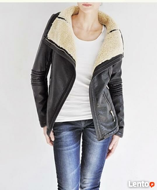 Kurtka damska skórzana od środka ocieplana miękkim ciepłym barankiem,