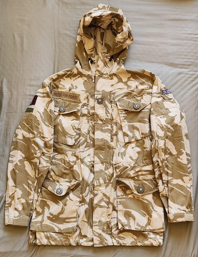 "ogłoszenie widoczne == AKTUALNE"Kurtka wojskowa brytyskich oddziałów spadochronowych w malowaniu pustynnym. Kurtka odporna na wiatr. Wymiary: wzrost 180 cm, obwód klatki 132 cm ( mierzona pod pachami ) długość z przodu 89 cm, długość rękawa 73 cm ( mierzony po stronie wewnętrznej od pachy do do końca rękawa )
