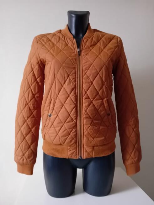 Pikowana kurtka bomberka w kolorze pomarańczowy. Doskonała, aby dodać odrobinę stylu i ciepła do codziennych outfity. ...