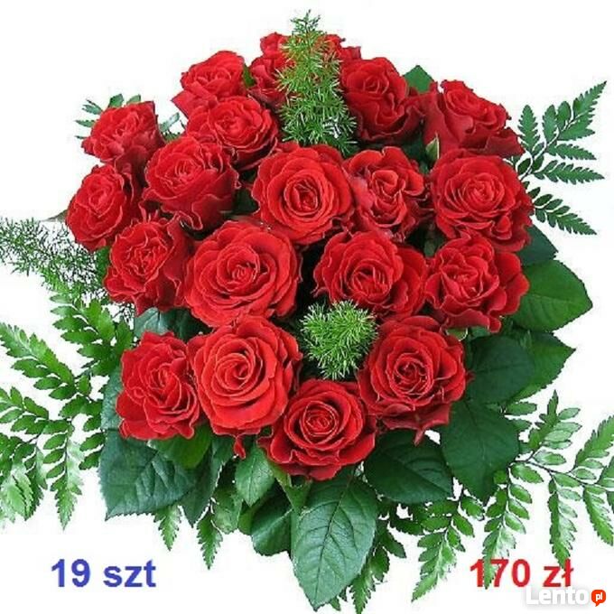 BUKIET 19 CZERWONYCH RÓŻ.CENA TYLKO 170 zł z dostawą lub 11 szt TYLKO 100 zł z dostawą