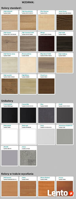 - Możliwe inne kolory i materiały z poza wzornika