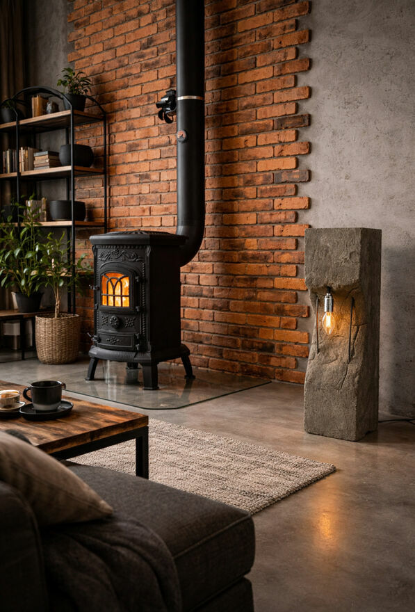 Lampa wykonana z betonu i stali.