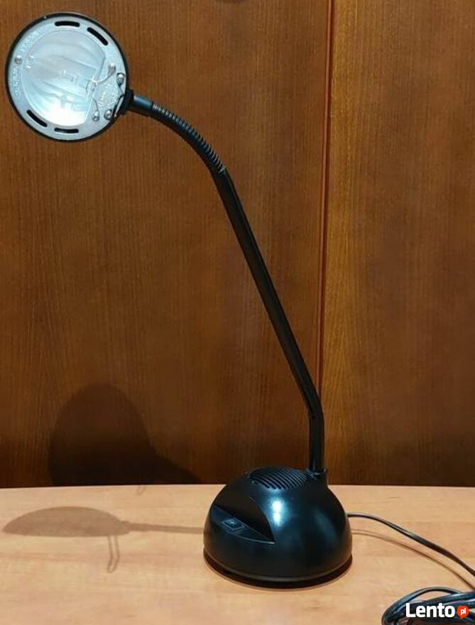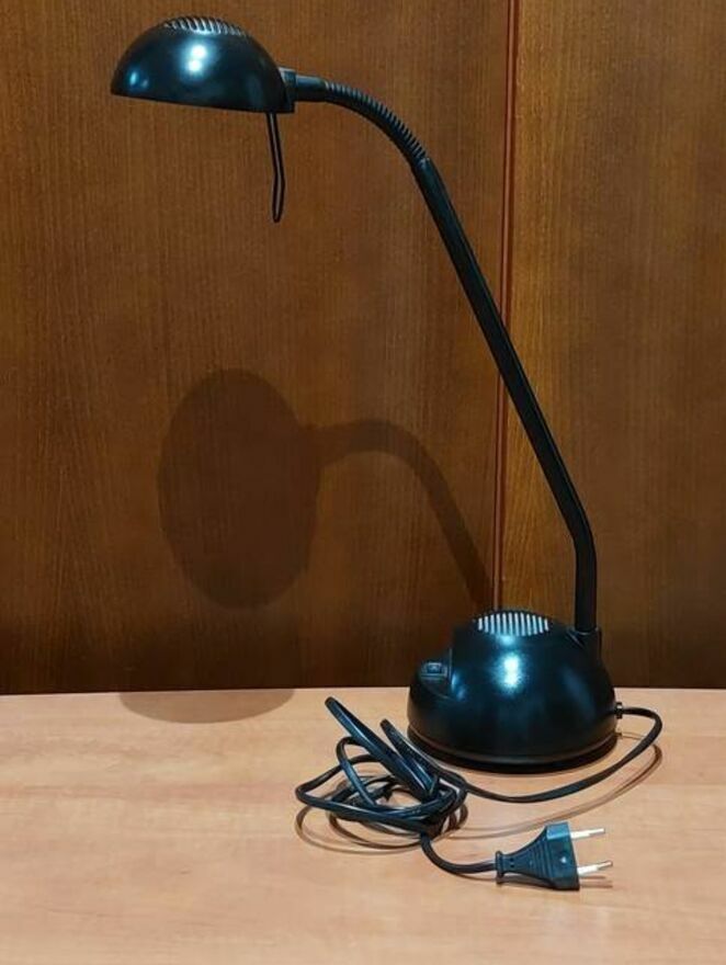 Lampka stalowa z ruchomym przegubem który pozwala dowolnie ustawić kąt światła. Posiada przełącznik który pozwoli ściemnić światło.Wysokość całkowita 56cm.