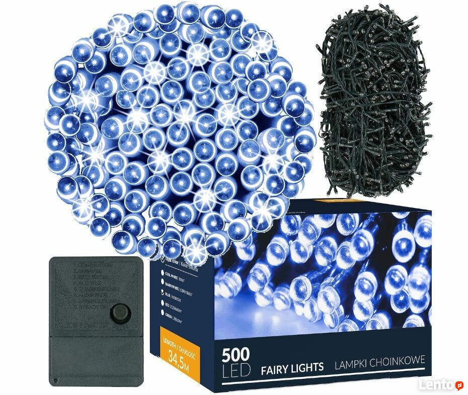 LAMPKI 500LED NA CHOINKĘ ZEW/WEW NIEBIESKIE 34,5M