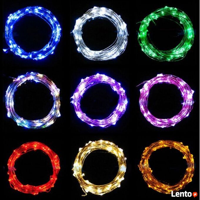 11/ LAMPKI sznur o długości 10 metrów, 100 lampek LED, zasilana bateriami 3x AA (brak w opakowaniu), drut miedziany - różne kolory do wyboru: