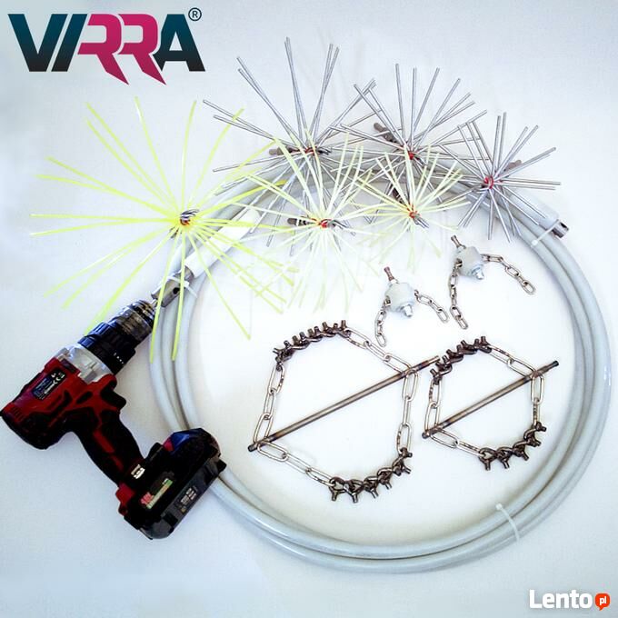 Lanca obrotowa Virra Multi to uniwersalne narzędzie do mechanicznego czyszczenia kominów, wentylacji, rur, szachtów, rynien, przewodów technologicznych.Jest to nowoczesna szczotka obrotowa napędzana zwykłą wkrętarką akumulatorową lub sieciową. Posiada możliwość czyszczenia przewodów i rur wykonanych z różnego rodzaju materiałów, o różnej średnicy i kształcie. Dzięki zastosowaniu odpowiednich głowic czyszczących zestawem obrotowym Virra można usuwać silne zabrudzenia takie jak nadmiar wyschniętej zaprawy w przewodach kominowych lub twardą sadzę szklistą, resztki przyklejonego materiału w podajnikach rurowych itp. Zestaw do mechanicznego czyszczenia przewodów kominowych i wentylacyjnych z głowicą nylonową nadaje się również do efektywnego czyszczenia rur wrażliwych na zarysowania takich jak: rury kwasoodporne, rury żaroodporne, rury nierdzewne, porcelanowe oraz PCV.