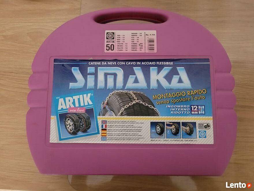 Sprzedam NIEUŻYWANE łańcuchy śniegowe Simaka Artic 50.Nadają sie na koła: 165 - 13, 170 - 13, 560 - 13, 600 - 13, 175/70 - 13, 185/65 - 13, 165/70 - 14, 175/65 - 14, 185/60 - 14, 195/55 - 14, 155 - 14, 135 - 15, 145 - 15, 170/65 - 365, 180/65 - ?40, 190/55 - 365, 195/45 - 15.