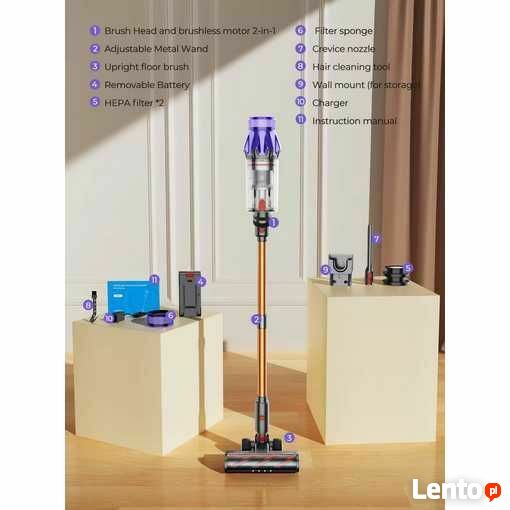 Odkurzacz ręczny Laresar V7 500W 50KPA bezprzewodowy. Nazywany potocznie najlepszym zamiennikiem Dysona.Urządzenie nowe, oryginalnie zapakowane.